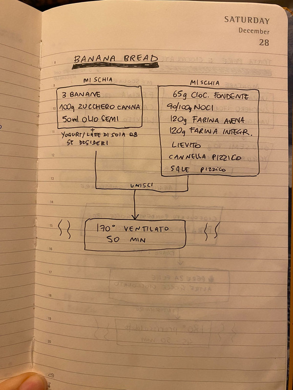 Mescola @banane{3} schiacciate con @zucchero di canna{100%g} e @olio di semi{50%ml}.